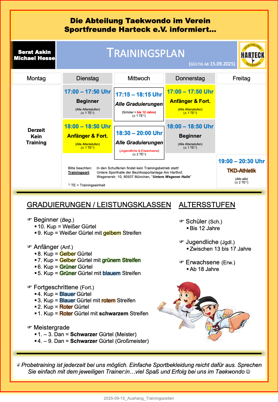 (Den aktuellen Trainingsplan zum Herunterladen findest Du hier)